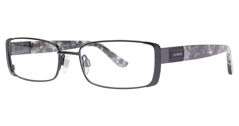 The Via Spiga Via Spiga Graziella eyeglass frame is authentic designer eyewear manufactured by Zyloware. This women’s frame comes complete with matching case and cleaning cloth. Via Spiga eyewear carries a one year manufacturer’s warranty. Custom lenses of all types are available for this frame.
